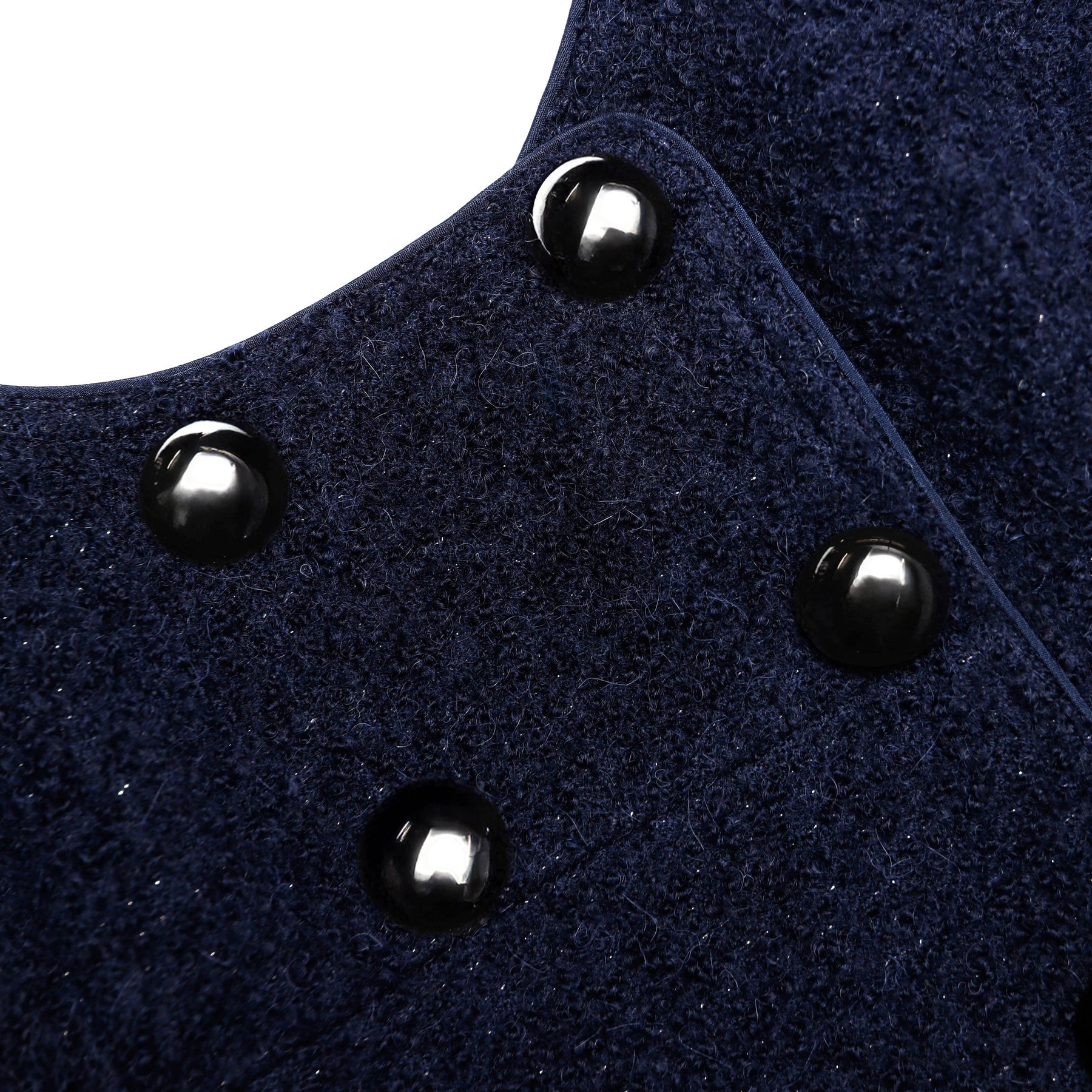 Textured Boucle Mini Dress fra Self-Portrait. Denne kjolen har en strukturert bouclékvalitet som gir et sofistikert uttrykk, kombinert med korte ermer og en rund, feminin utringning. Forstykket er detaljert med doble, blanke knapper som understreker den klassiske, litt uniforms-inspirerte fasongen. Snittet er figurnært gjennom overdelen før skjørtet faller rett ned i en kort, enkel silhuett.