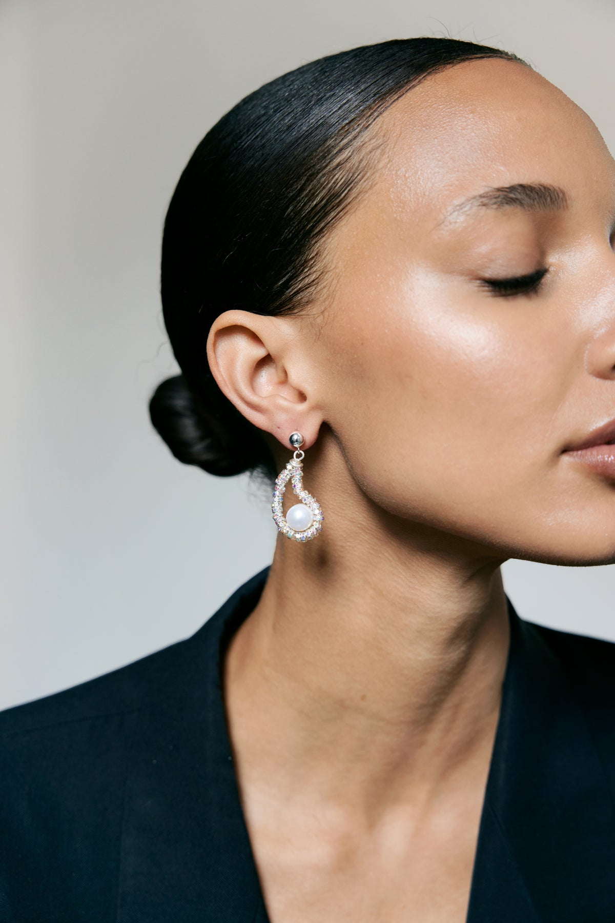 Tiny Oysters fra Pearl Octopuss.y. Disse øredobbene er lekne, men likevel elegante, og er en mer elegant vri på Pearl Octopuss.ys signatur Oyster-øredobber. Med glitrende glasskrystaller og ferskvannsperler fungerer de som den perfekte iøynefallende detaljen, enten de brukes med ditt vanlige kontorantrekk eller din favorittfestkjole.