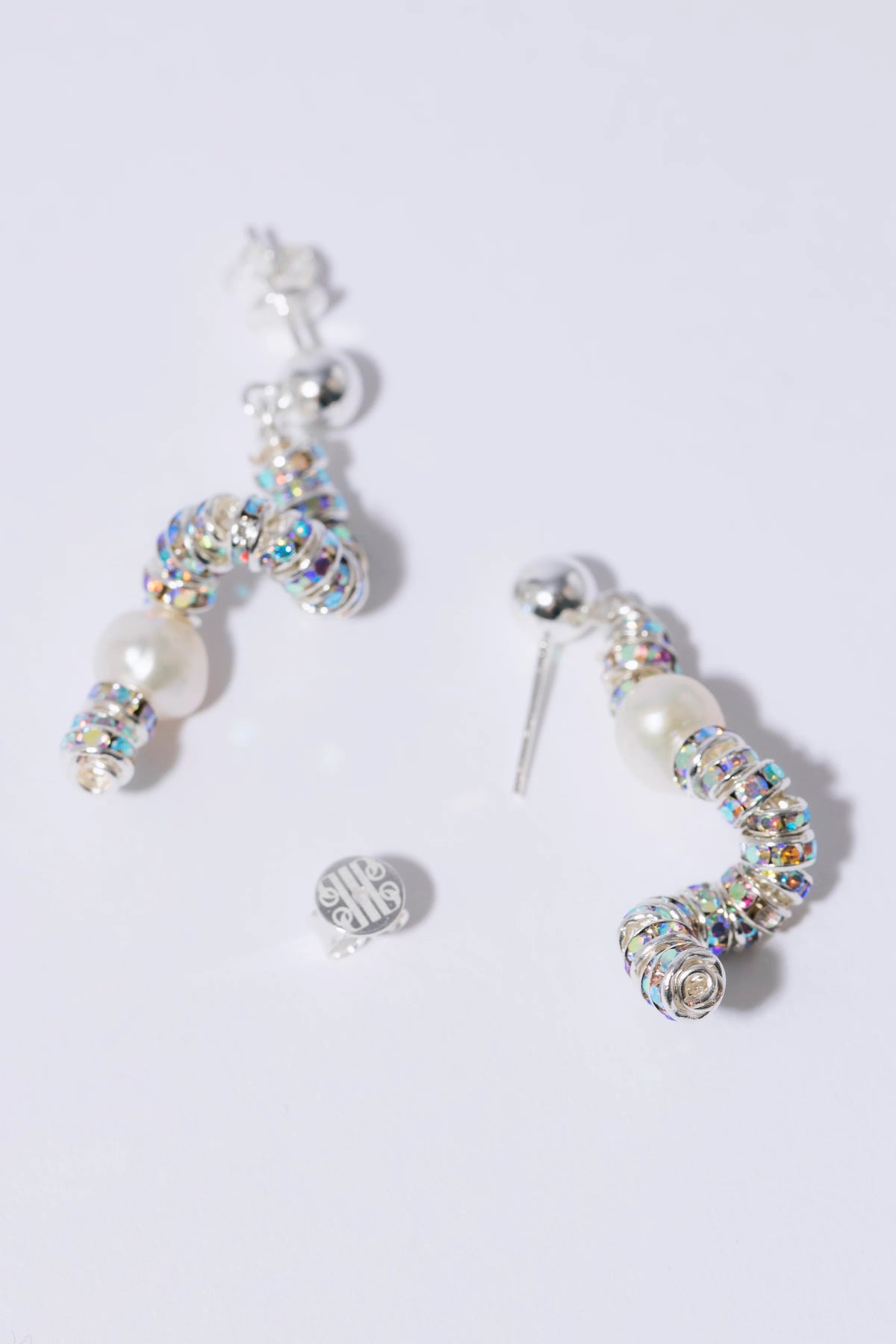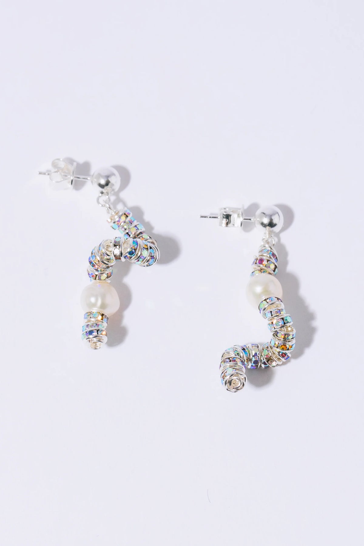 Tiny Snakes fra Pearl Octopuss.y. En mer elegant vri på Pearl Octopuss.y signatur snake-øredobber. Det asymmetriske designet og de iriserende krystallene gir dem akkurat den rette mengden stil, mens den flatterende organiske formen og lette materialene gjør dem perfekte for hverdagsbruk.