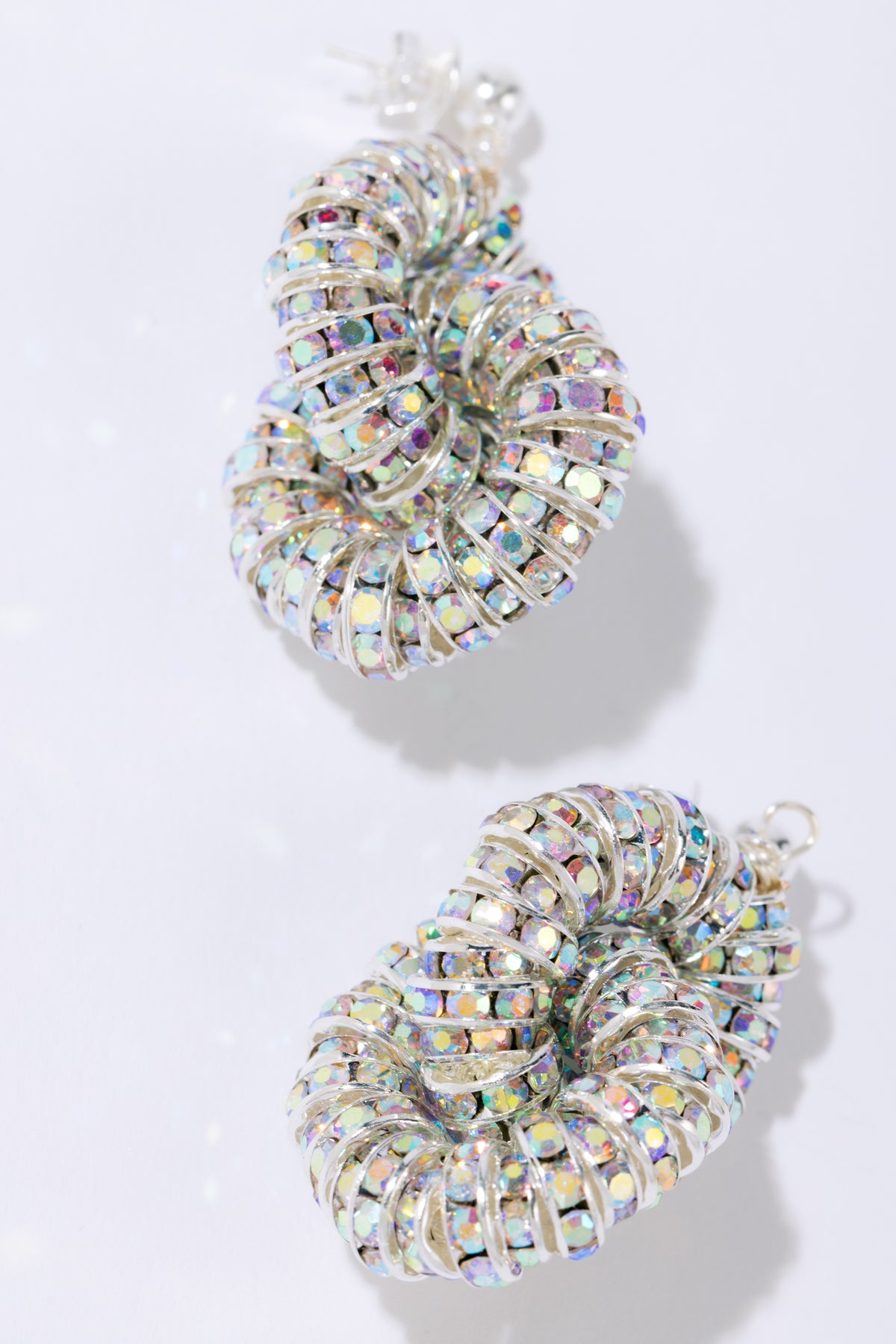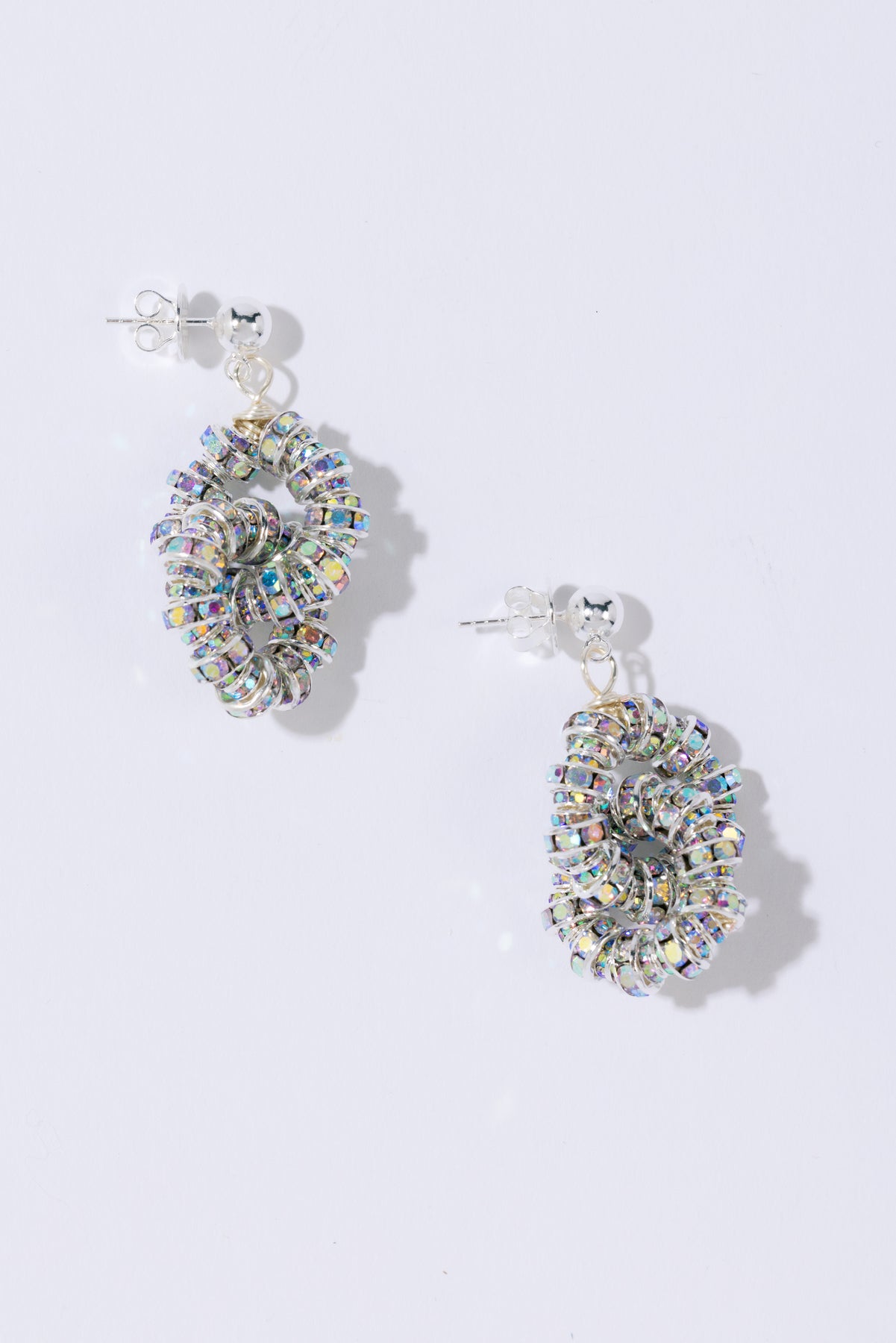 Tiny Tires fra Pearl Octopuss.y. Disse yndige, men iøynefallende øredobbene har sammenkoblede ringer laget med glitrende glasskrystaller.