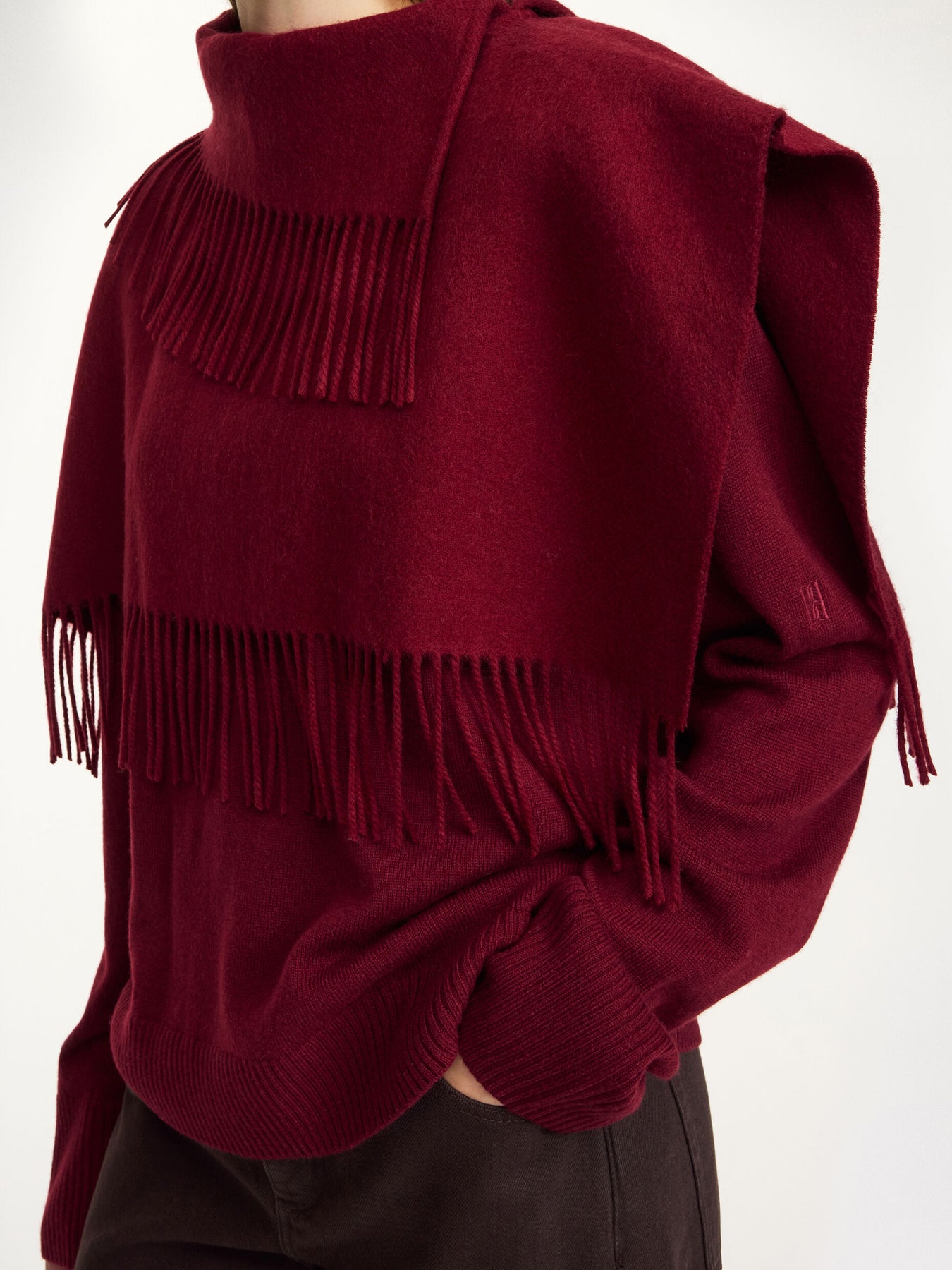 Turtla skjerf fra By Malene Birger. Med dette skjerfet kan du enkelt sprite opp en klassisk kul look. Med sin frynsede kant og brede skuldre er Turtla en spennende ny måte å legge til varme og gjennomtenkte detaljer.