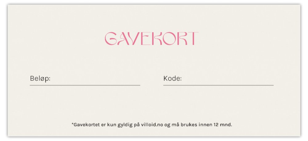 Gavekortet er kun gyldig på villoid.no og må brukes innen 12 måneder.