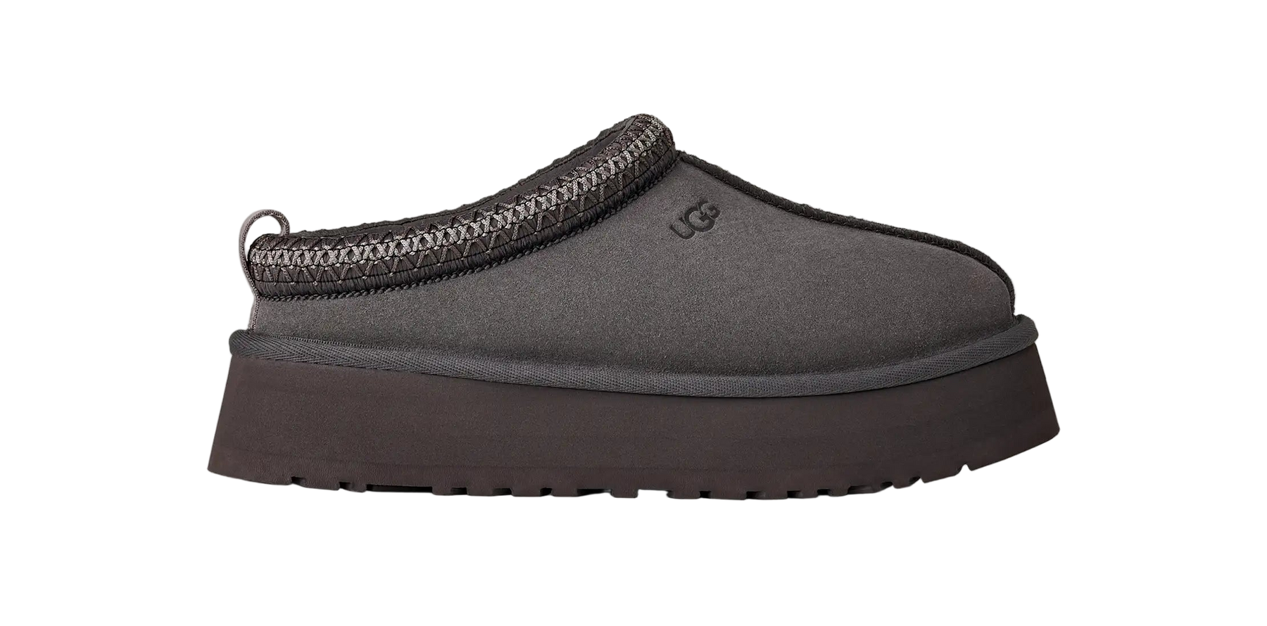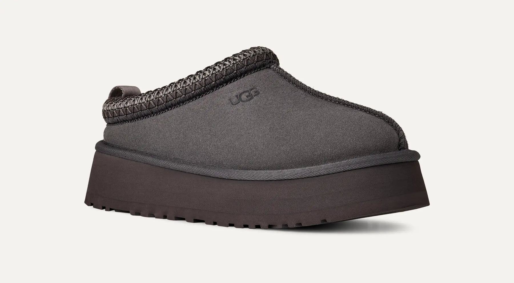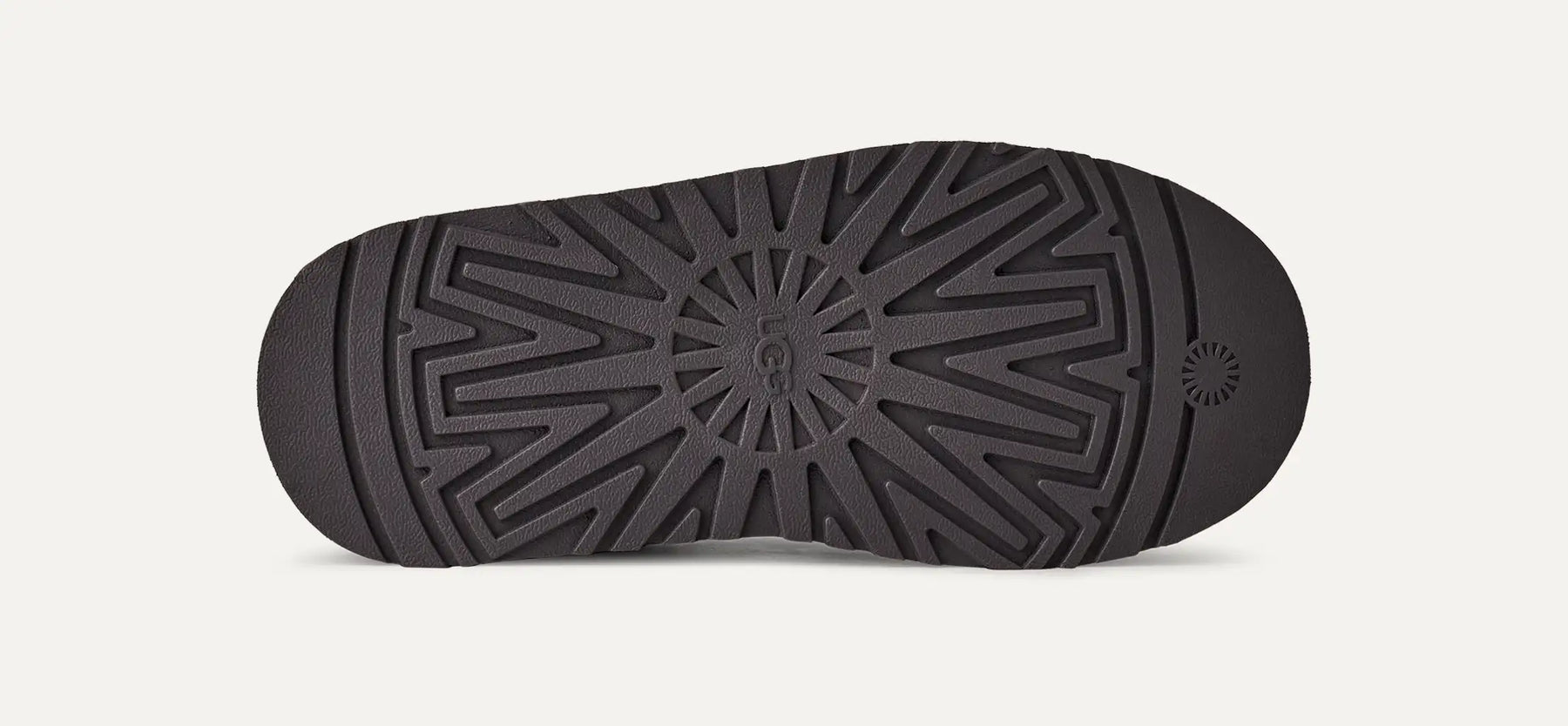 W Tazz II fra Ugg. Det nyeste tilskuddet i Tazz-familien, W Tazz II. W Tazz II slår sammen Uggs Coquette- og Disco-stiler for en ny tøffel som er helt unik. Denne skoen legger til en plattformsåle i retrostil til en velkjent slip-on-silhuett for utendørsbruk. Laget av Ugg sitt karakteristiske saueskinn og semsket skinn, gir denne uanstrengte stilen et lekent uttrykk til alle favorittantrekkene dine. Tasman-fletten i grå gjør at denne skoen skiller seg ut og legger til en kul detalj. 4,5 cm plattformhøyde.