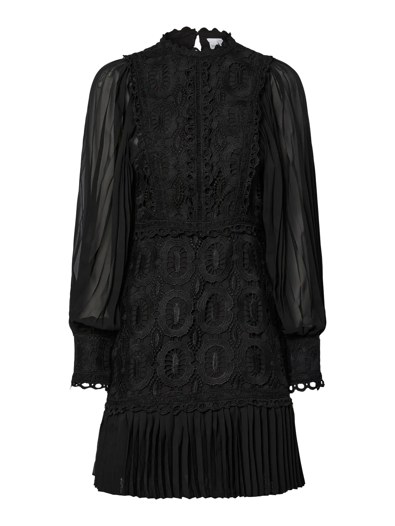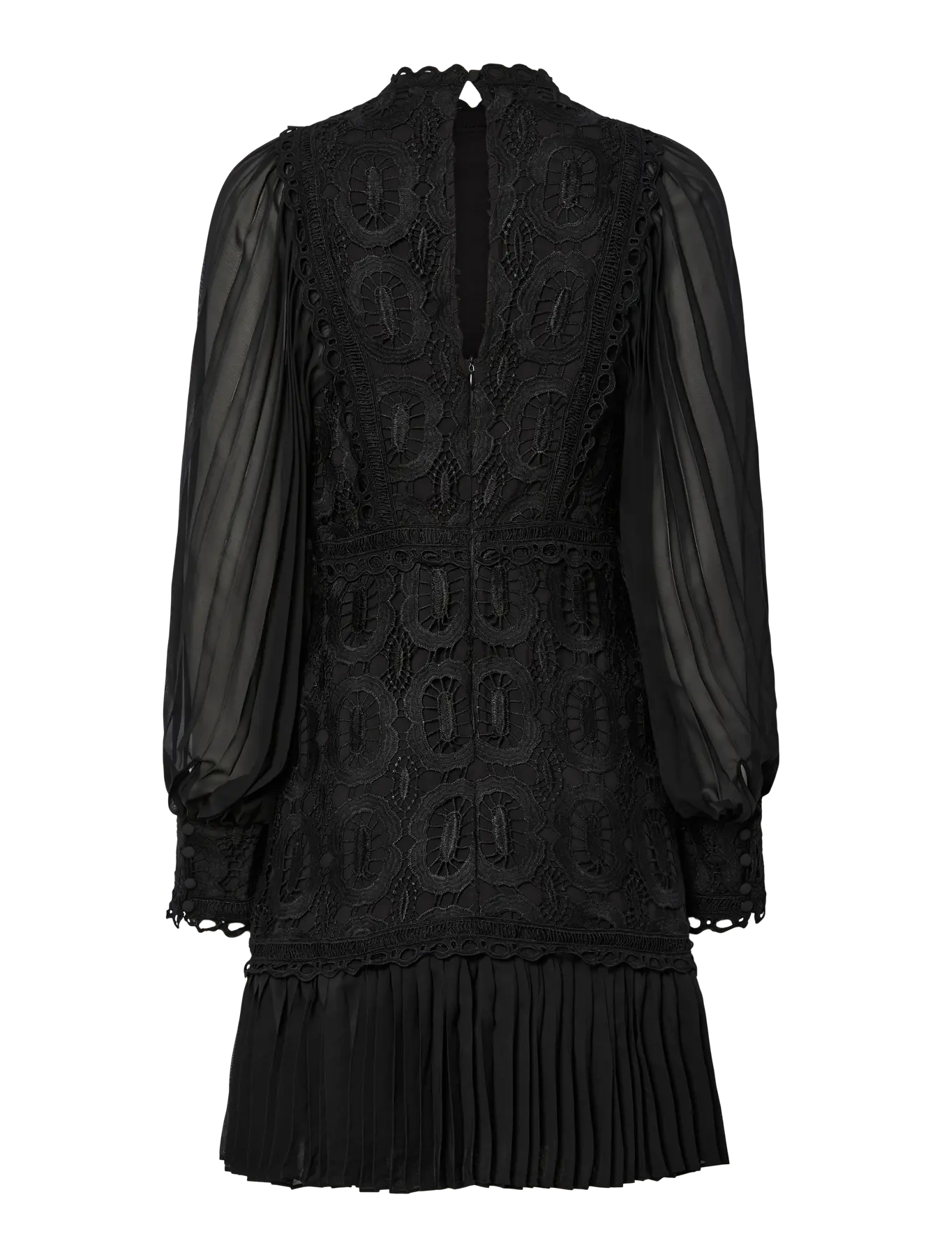 Yaslaminda Ls Dress fra Y.A.S. En feminin og detaljrik kjole som kombinerer romantiske blonder med et moderne uttrykk. Yaslaminda Ls Dress har lange, transparente ermer og en kropp i intrikat blonde, mens den plisserte kanten nederst tilfører et lekent preg. Den høye halsen og det korte snittet gjør kjolen både elegant og tidløs – perfekt til festlige anledninger.