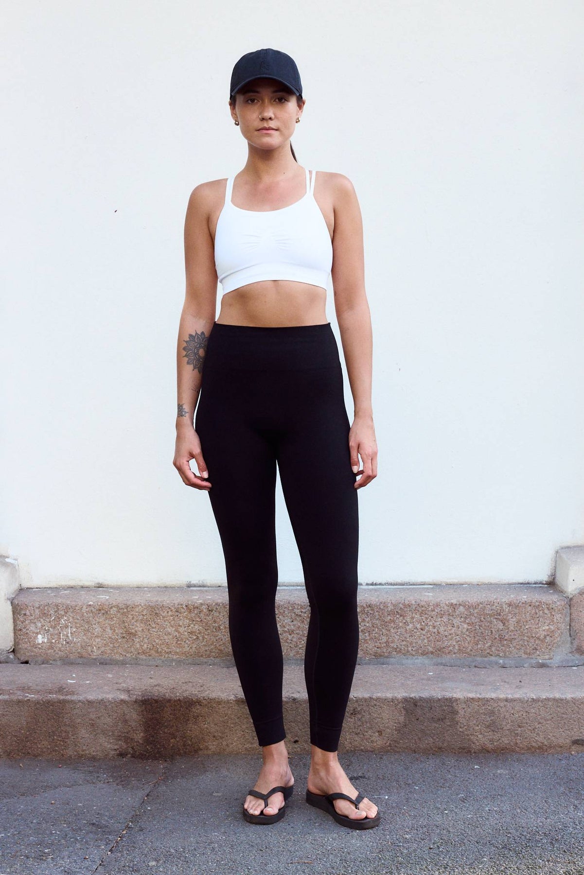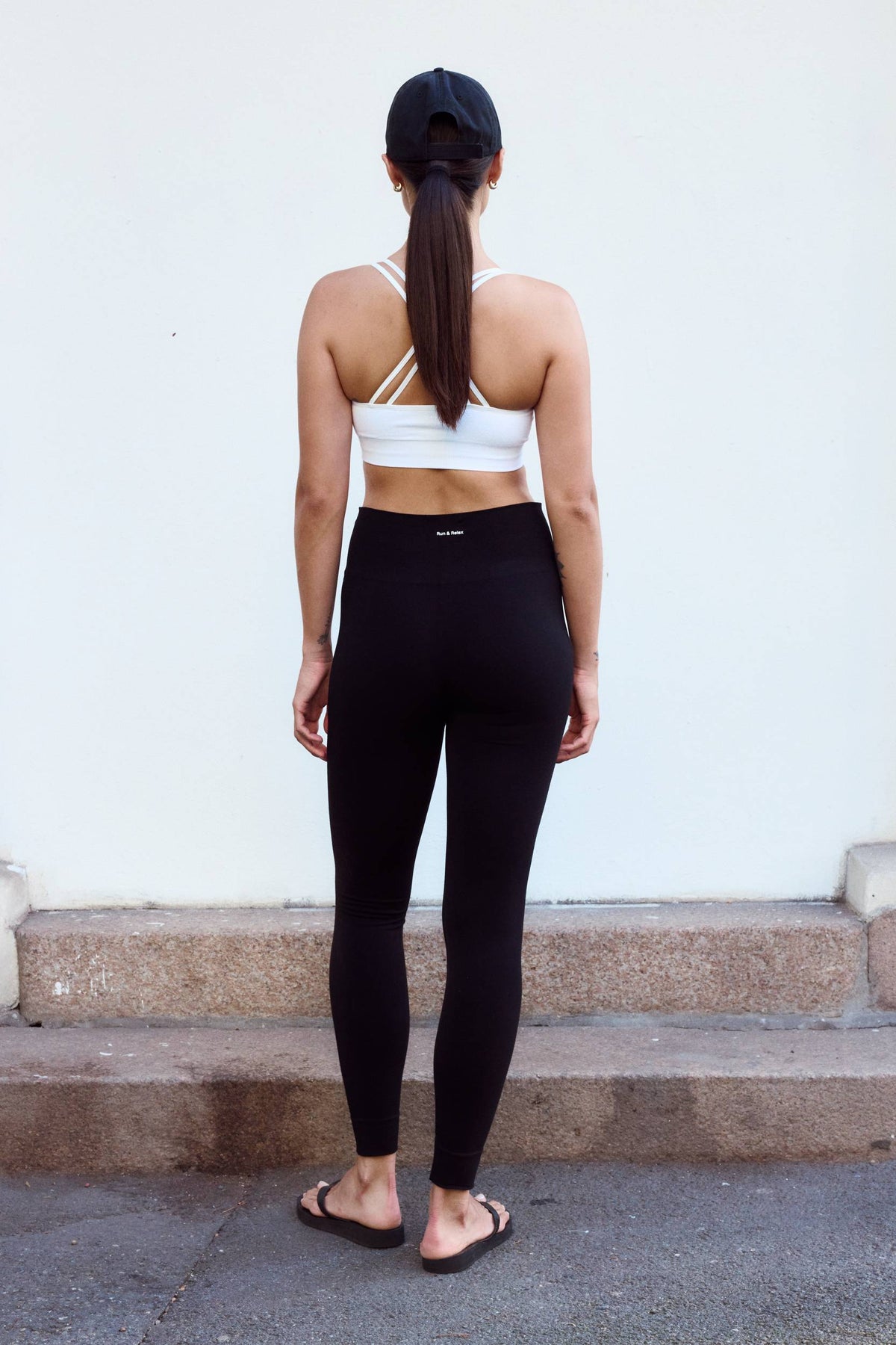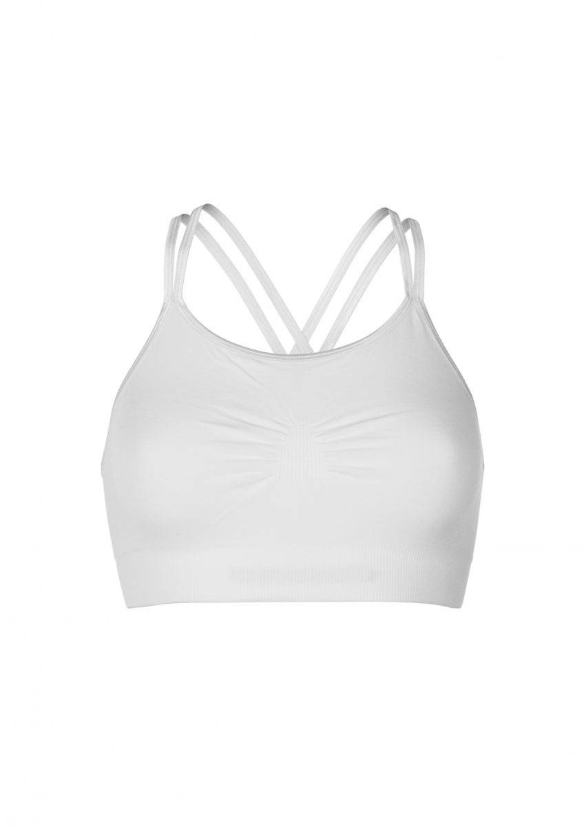 Yoga Bamboo Bra fra Run & Relax. Myk og sømløs yoga-BH laget av naturlig antibakterielt bambusstoff. Denne toppen har delikate kryssende stropper bak, feminine rysjedetaljer foran og komfortabel underkant. Dette er den perfekte BH-en for å gi stil til lavintensiv sport som pilates og yoga.