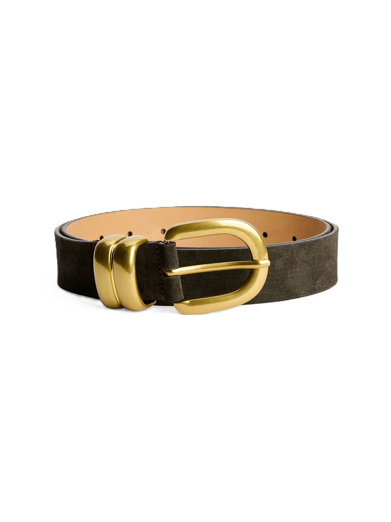 Zoira Suede fra By Malene Birger. Fullfør antrekkene dine med det tidløse Zoira-beltet fra By Malene Birger. Dette beltet er laget av semsket skinn og har en buet, gullfarget spenne.